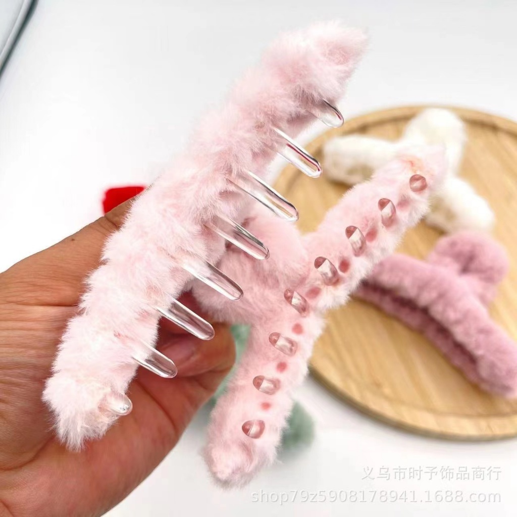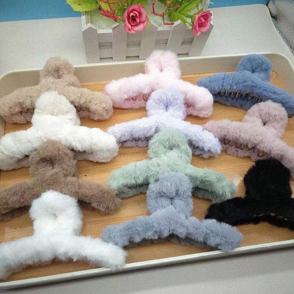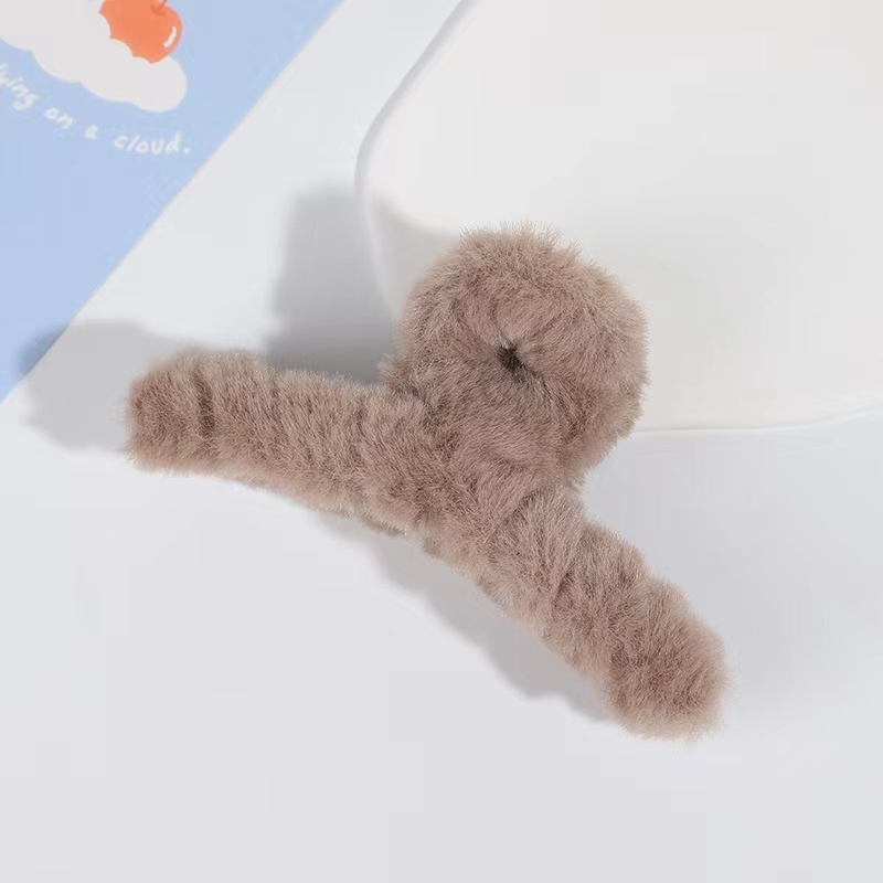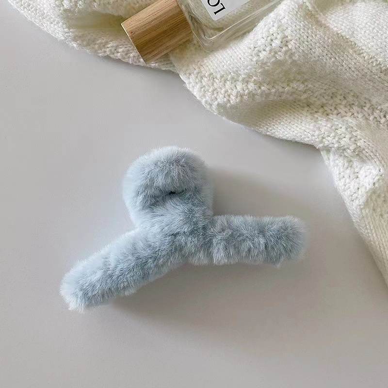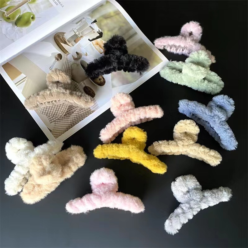 Autumn Winter Furry Grab Clip Back Head Plate Hair Clip Headdress Elegant Temperament French Shark Clip Plush Hair Clip