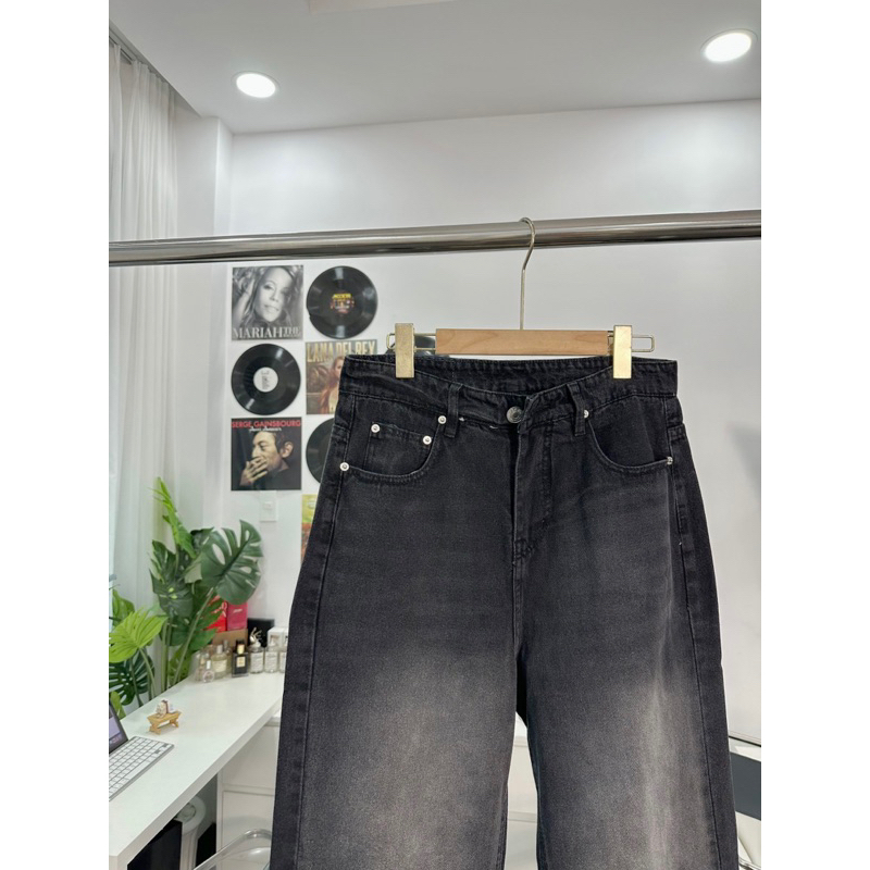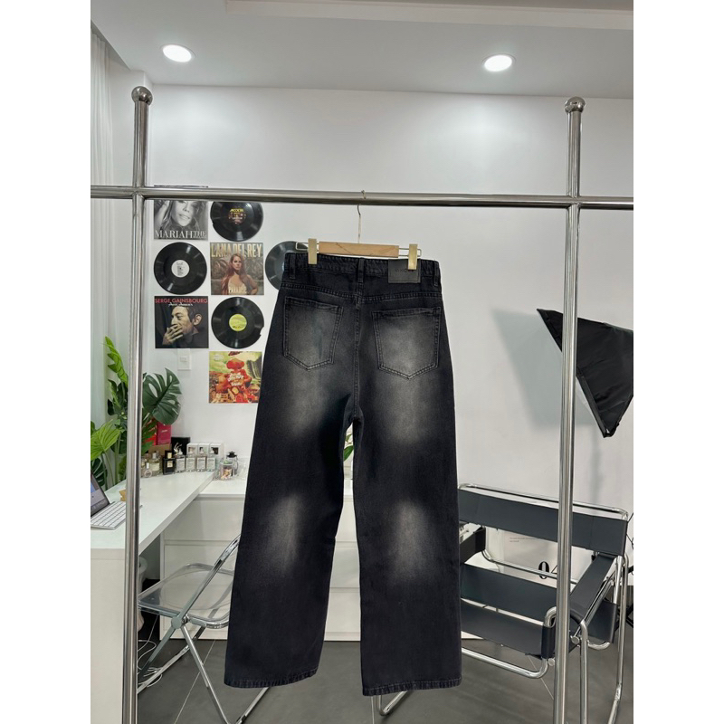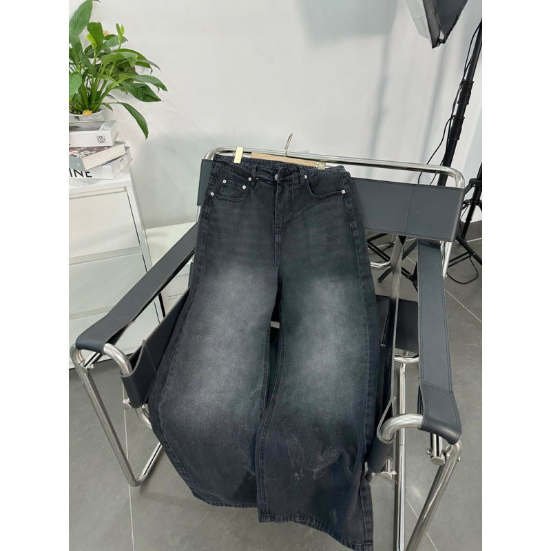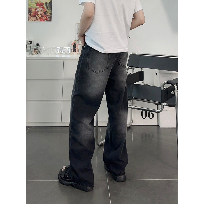 Baggy JEANS Wide Tube Smoke Gray Stripe 1007 FORM UNISEX (Real Photo)