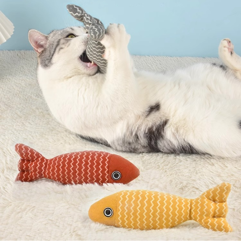 Cat Toy Fish Self-Happy Relieving Boredom Catnip Simulation Fish Teasing Cat Stick Cat Doll Teasing Cat Handy Tool