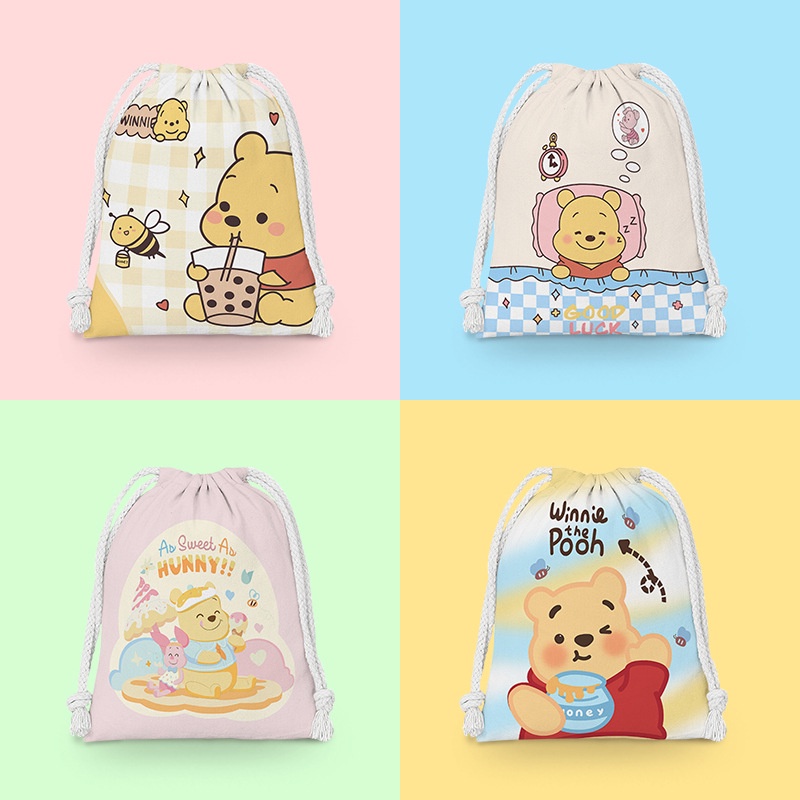 Cute Winnie The Pooh Drawstring Bags Cosmetic Bag Candy Bags Storage Bag Portable Folding Bags Kid Theme Party Birthday Gifts Drawstring Bundle Pocket
