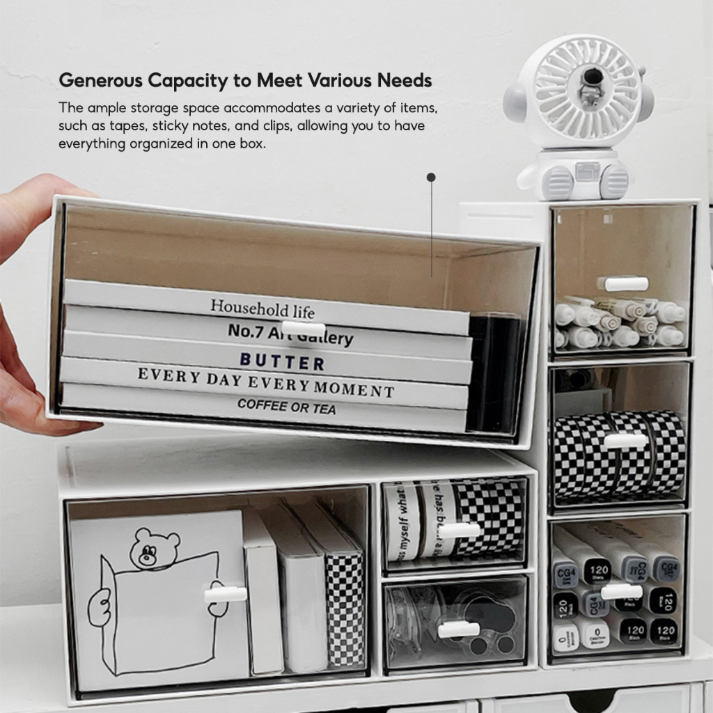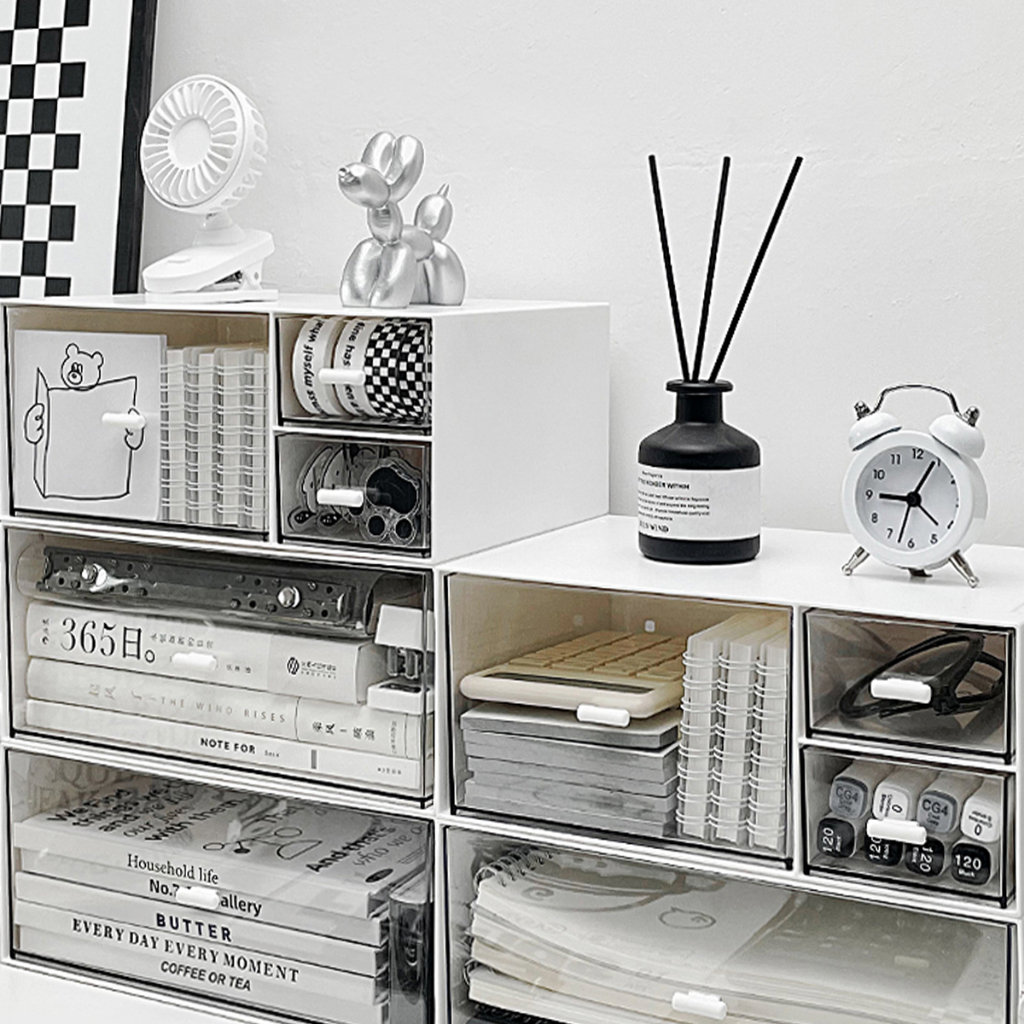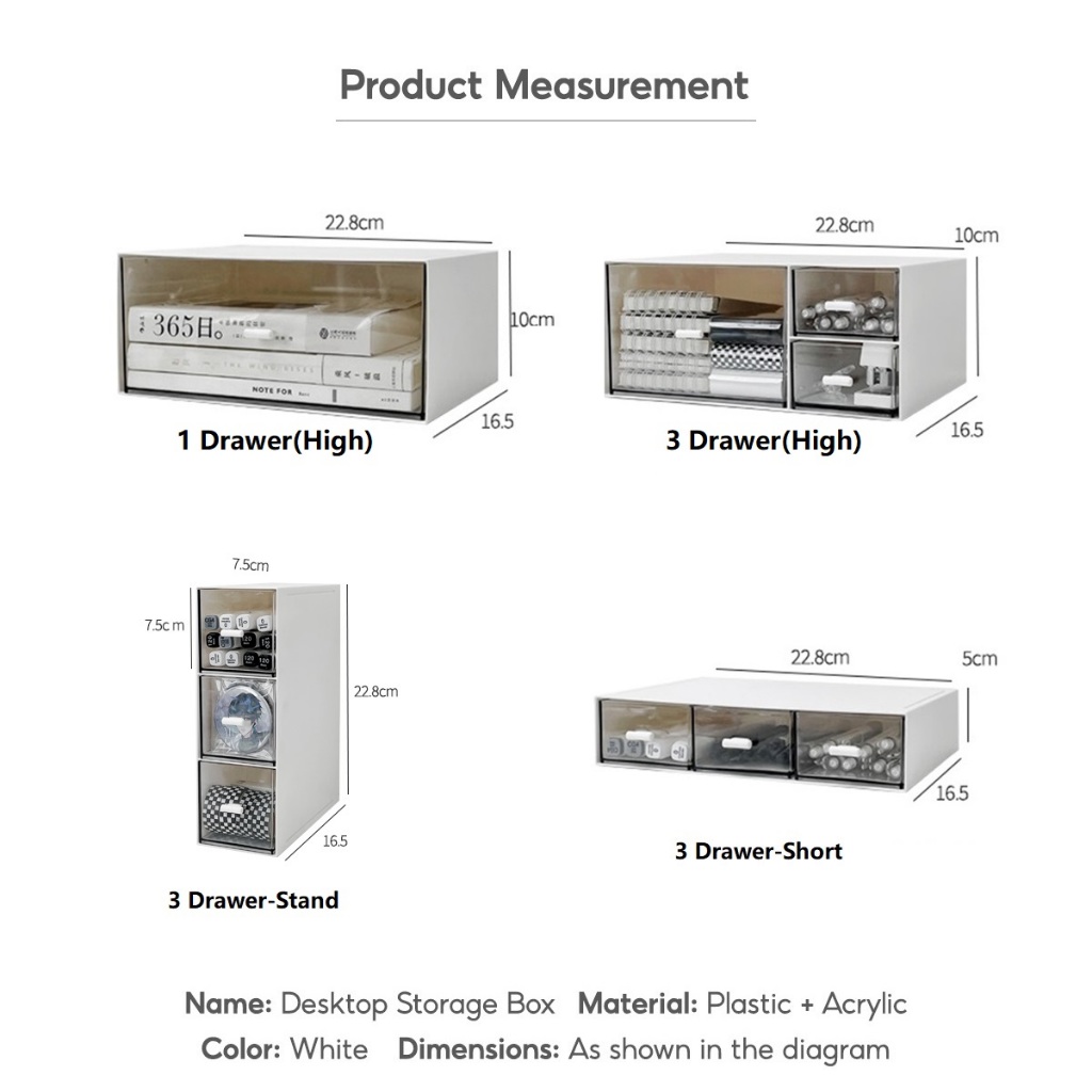 Quality:???? Happy with my purchase ? Great way to organise your desk. Easy installation of the white handles ?? You can customise how you want to organise by choosing your preferred drawer styles.