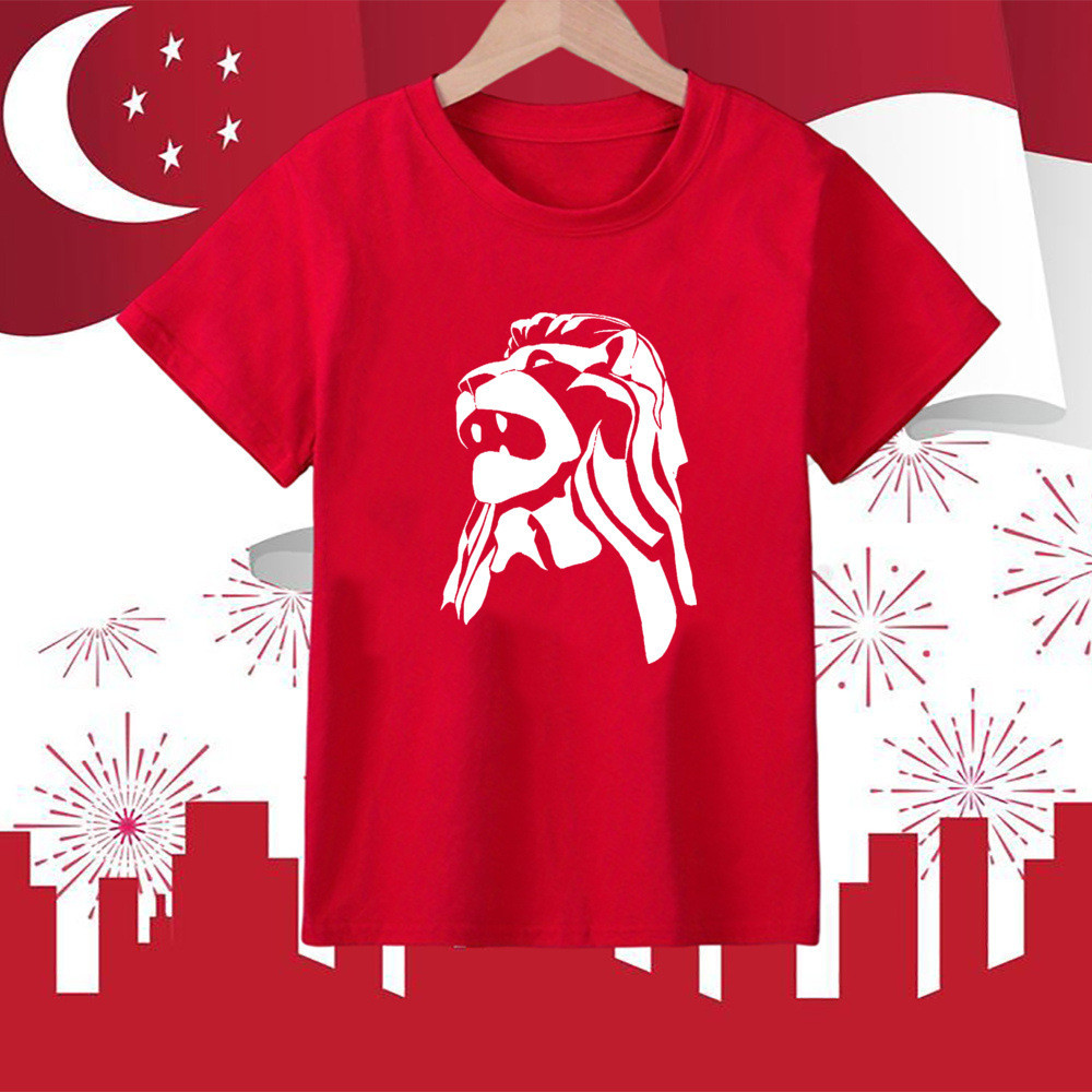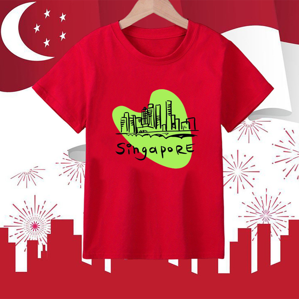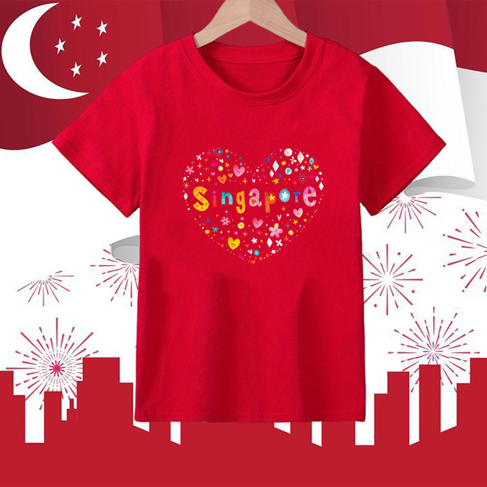 I Love Sg Cute Tie Pattern Print T-shirt Singapore National Day Children Outfit National Day Boys Girls Clothes