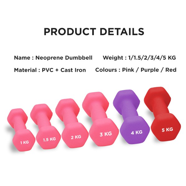 (JIJI.SG x FITNET) Neoprene Dumbbell / Neoprene / Cast Iron / Dumbbell / Perfect Shape / Weight Available 1-5KG