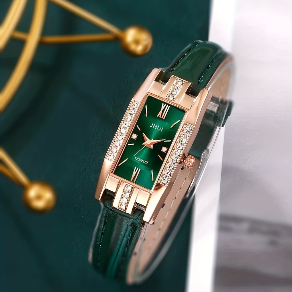 Kegllect Women Watch Set Rhinestone Quartz Watches Ladies Square Dial Jewelry Set Gift for Mom Her