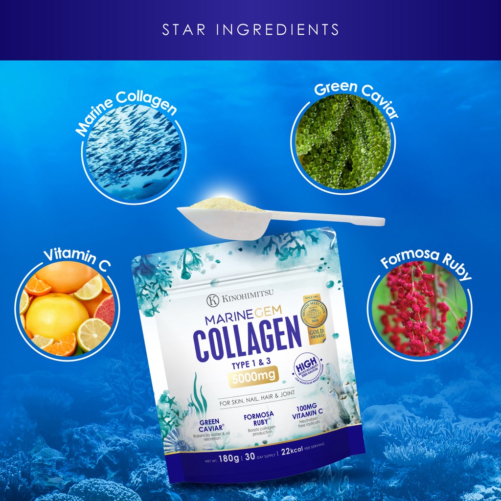 Kinohimitsu MarineGem Collagen 5000mg Beauty & Health Supplement 180g - Skin Firming & Brightening