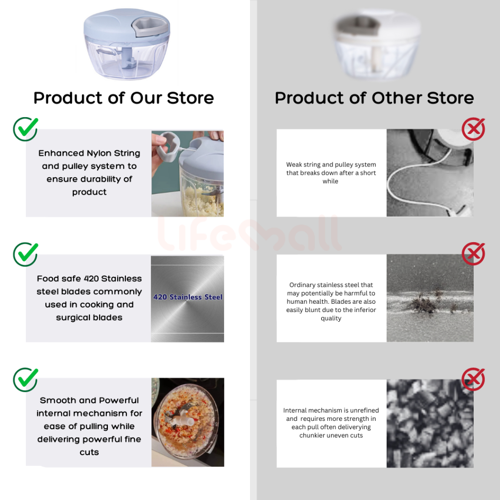 LifeMall - Manual Food Chopper/ Garlic Chopper/ Shredder/ Meat Mincer Food Processor