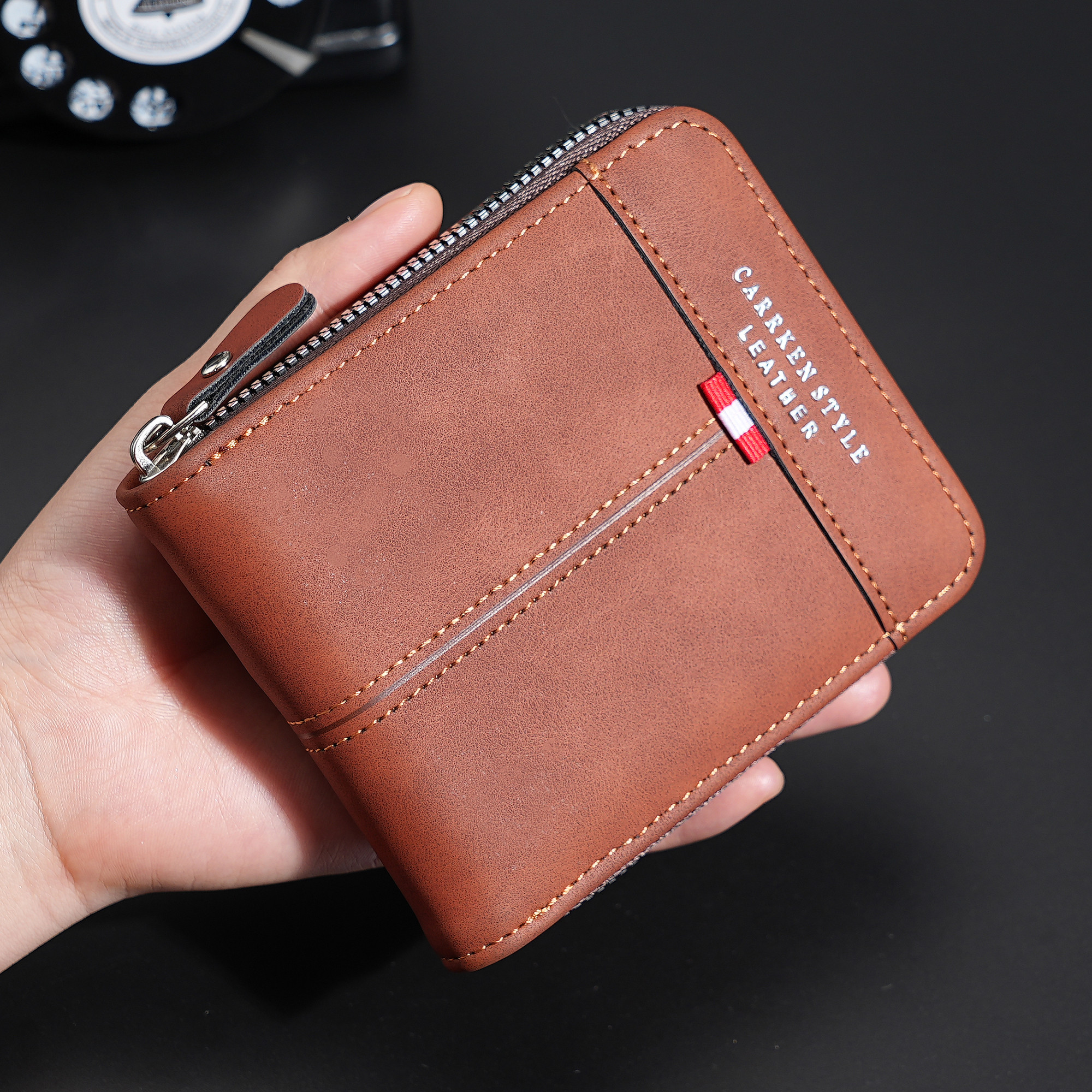 Leather material: leather True to the description: so ok Hey, this is a beautiful wallet from the zipper to the seam that is convenient to go back to the sag.