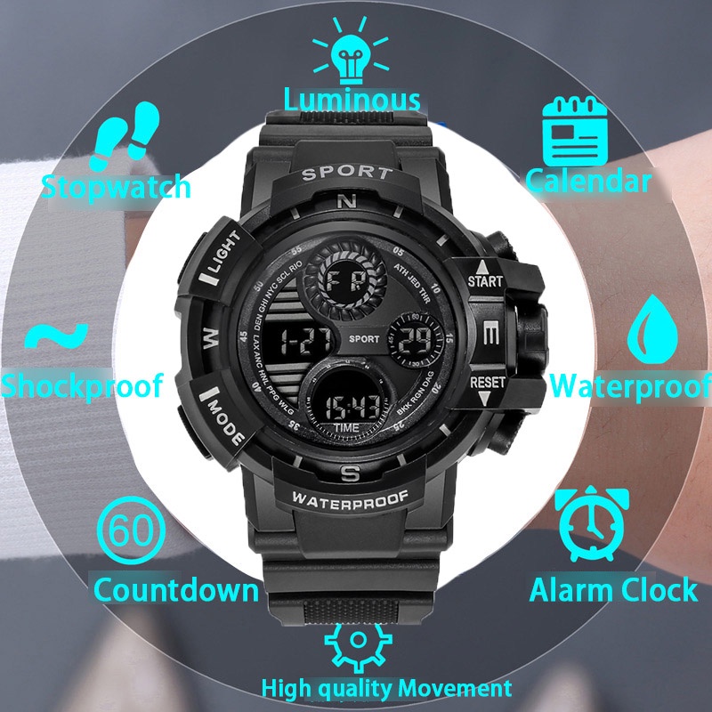 Men's Fashion Sports Waterproof Watches Multifunctional Electronic Wristwatch