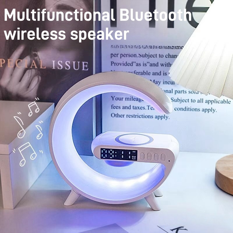 Mini Bluetooth Speaker Multifunctional Wireless Charger Speaker with Alarm Clock and Color Lights Fast Charging Speaker