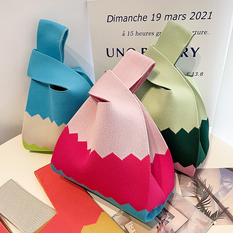 [SG Seller] Lunch Bag Candy Color Knit Tote Bag Women Handbags Cute Shopping Reusable Sling Bag Mother Day