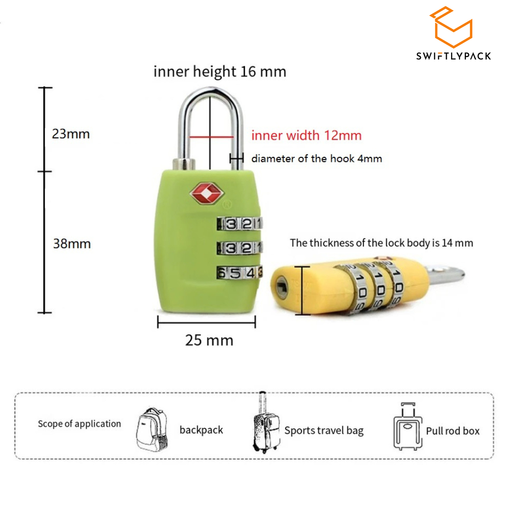 TSA Luggage Lock 3 Digit Combination Cable Padlock For Travel Suitcase Bags and Gym Lock